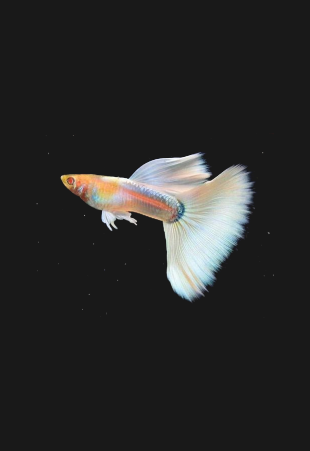 The Albino Full Platinum Guppy (Pair) is a striking freshwater ornamental fish prized for its elegant, metallic white body and distinctive red eyes. This premium guppy variety displays a smooth, full platinum coloration from head to tail, making it a standout addition to any aquarium.