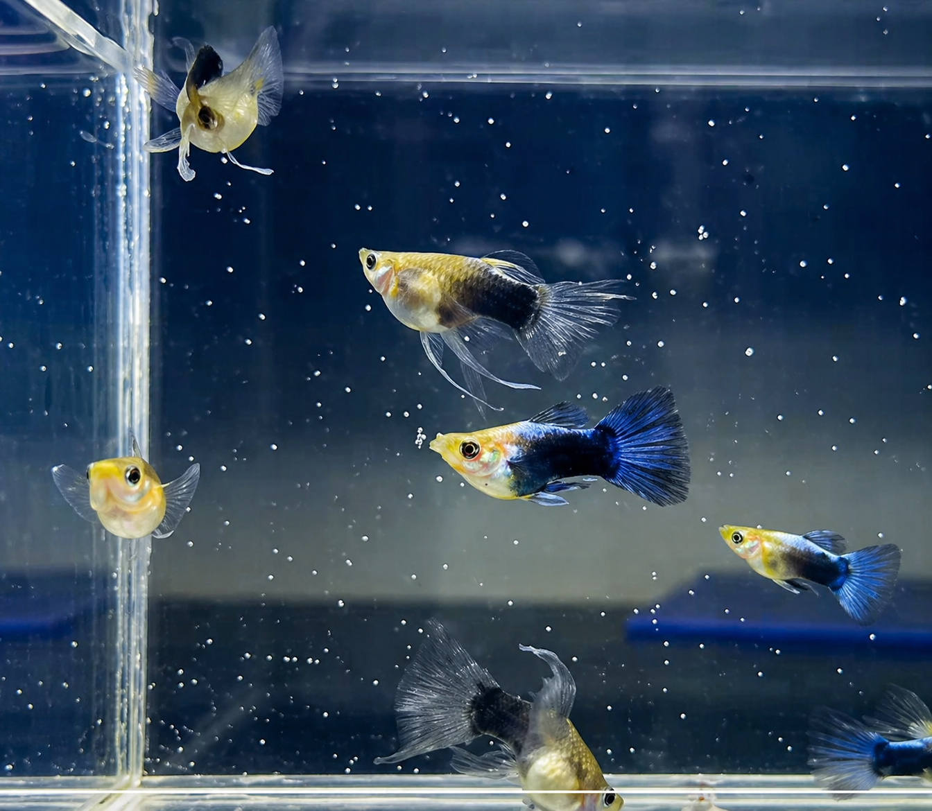 These guppies are active, hardy, and adapt well to a variety of freshwater setups. Their vibrant coloration becomes even more intense under proper lighting and a nutrient-rich diet. Ideal for both beginners and experienced hobbyists, they add a lively and colorful presence to any aquarium.